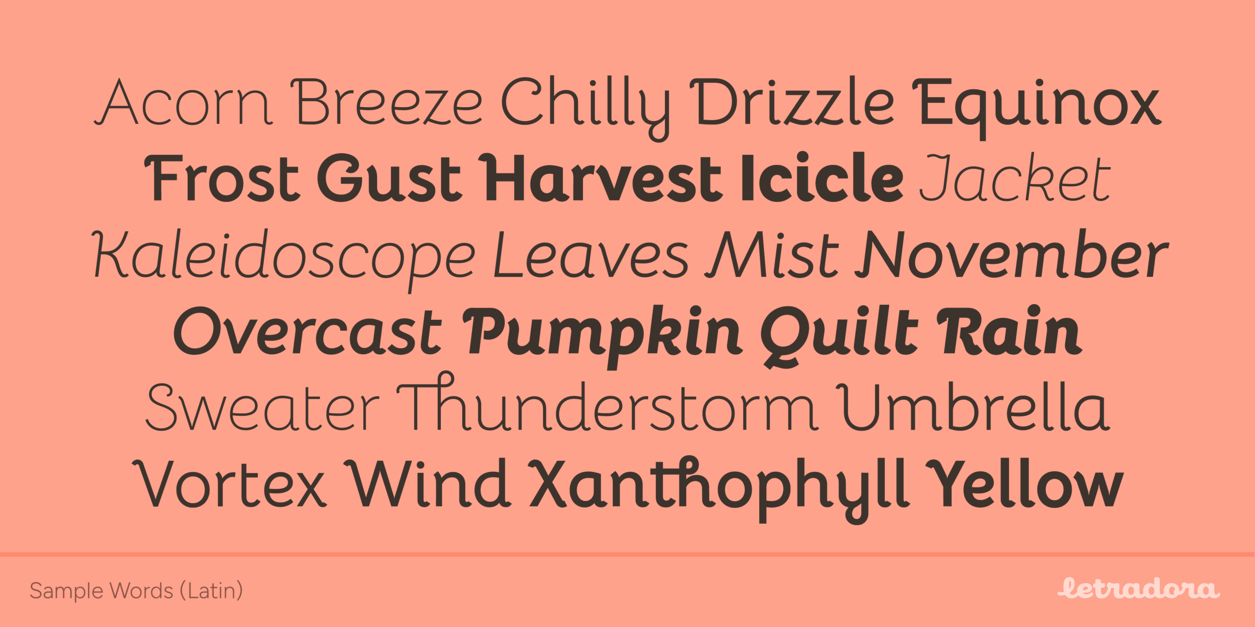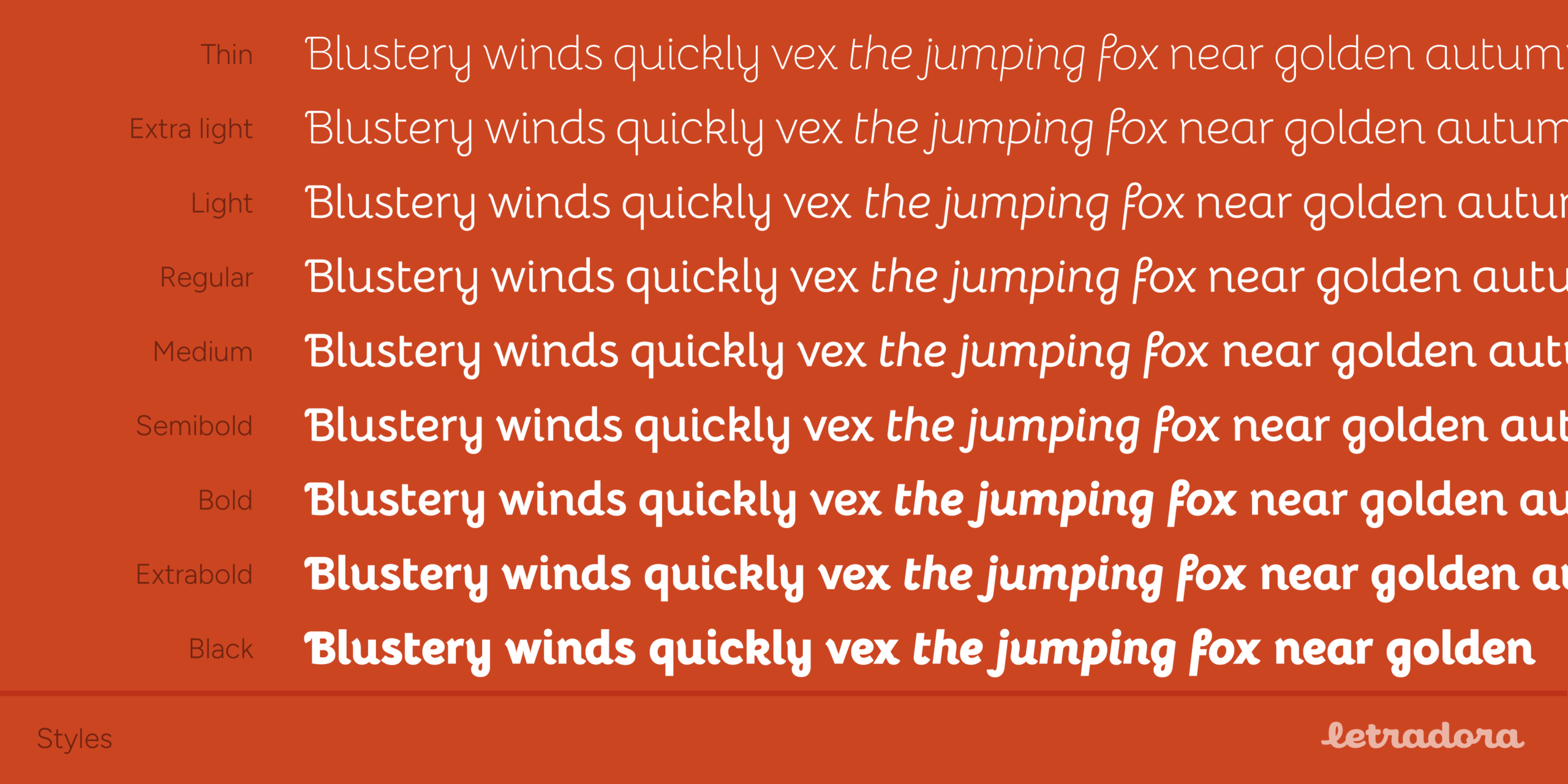It has a companion, Bellota Text, and comes in 9 weights (thin, extralight, light, regular, medium, semibold, bold, extrabold, black) with their corresponding italics. Bellota also comes as a variable font.