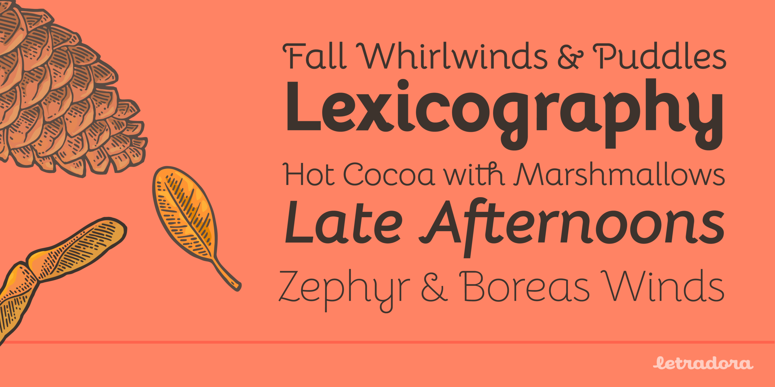 Bellota is an ornamented, low contrast sans-serif with swash alternates. It’s just cute enough!